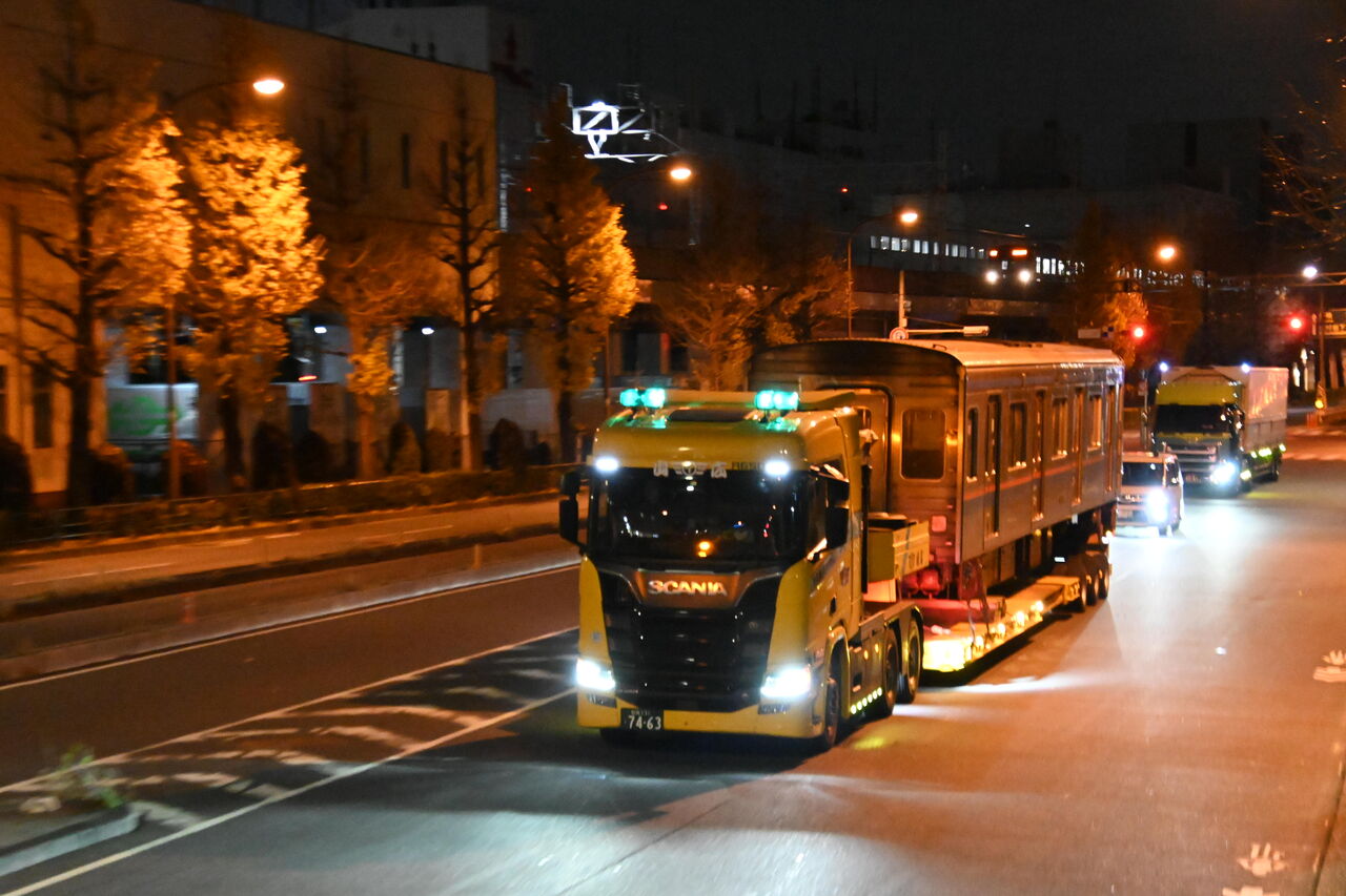 2次車消滅!都営6300形6312編成が廃車のため陸送される